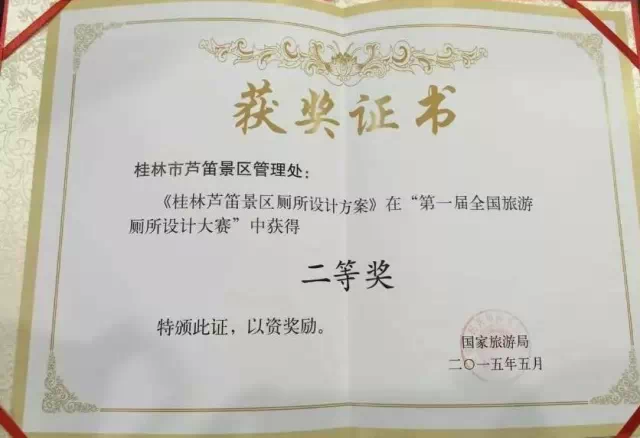 快讯!桂林芦笛景区洞口平台厕所设计方案喜获国家旅游局举办的“第一届全国旅游厕所设计大赛”方案二等奖!据了解,此次设计大赛共征集到各类作品230余件。经过旅游、建筑设计、环境卫生等方面7名专家组成的评审委员会初评、复评和审核,共评选出20个获奖作品。其中,一等奖3个、二等奖3个、三等奖4个、鼓励奖10个。竞争激烈吖!作为桂林市首批旅游厕所建设提升项目,芦笛景区洞口平台旅游厕所今年2月正式对游客开放。其中男厕西面和北面为透明落地玻璃幕墙,小便池就安在玻璃墙边。小便池背后有大理石做成的挡板,充分考虑了如厕者的隐私。玻璃墙外是美丽的田园风光,游客可以一边如厕一边观景。此外,洞口平台厕所还设有母婴室、老人室和残疾人专用厕所,并配有背景音乐和空调、热水等,让游客们享受一流的服务。