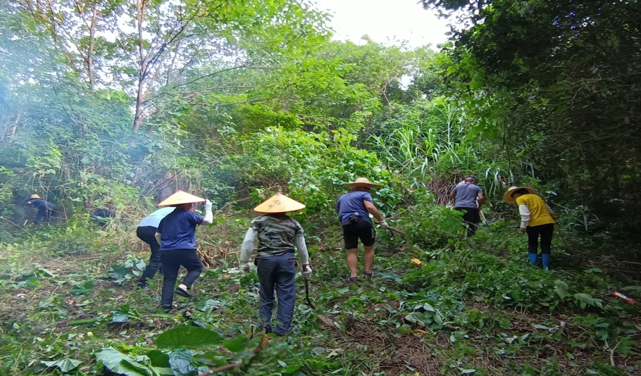 党员干部率先垂范,带领公司骨干力量迅速投入到紧张而有序的清理工作中。大家手持镰刀、砍刀、油锯、割草机等工具,分工合作,有的负责铲除顽固杂草,有的则负责搬运清理出的灌木与垃圾。尽管天气炎热,但大家热情高涨,不畏辛劳,以实际行动践行了“不忘初心,牢记使命”的承诺。