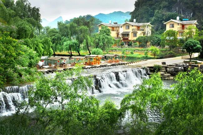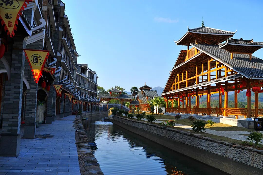 龙虎河伴着山脉蜿蜒而过,与古色古香的建筑融为一体,别有一番郊外小镇的独特风光。