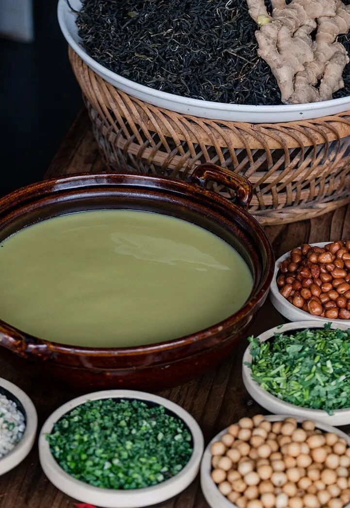 恭城油茶始于唐代,苦涩、浓香、热辣,回味甘甜清凉。清朝时,因受到乾隆皇帝的喜爱,恭城油茶被赐名为“爽神汤”。