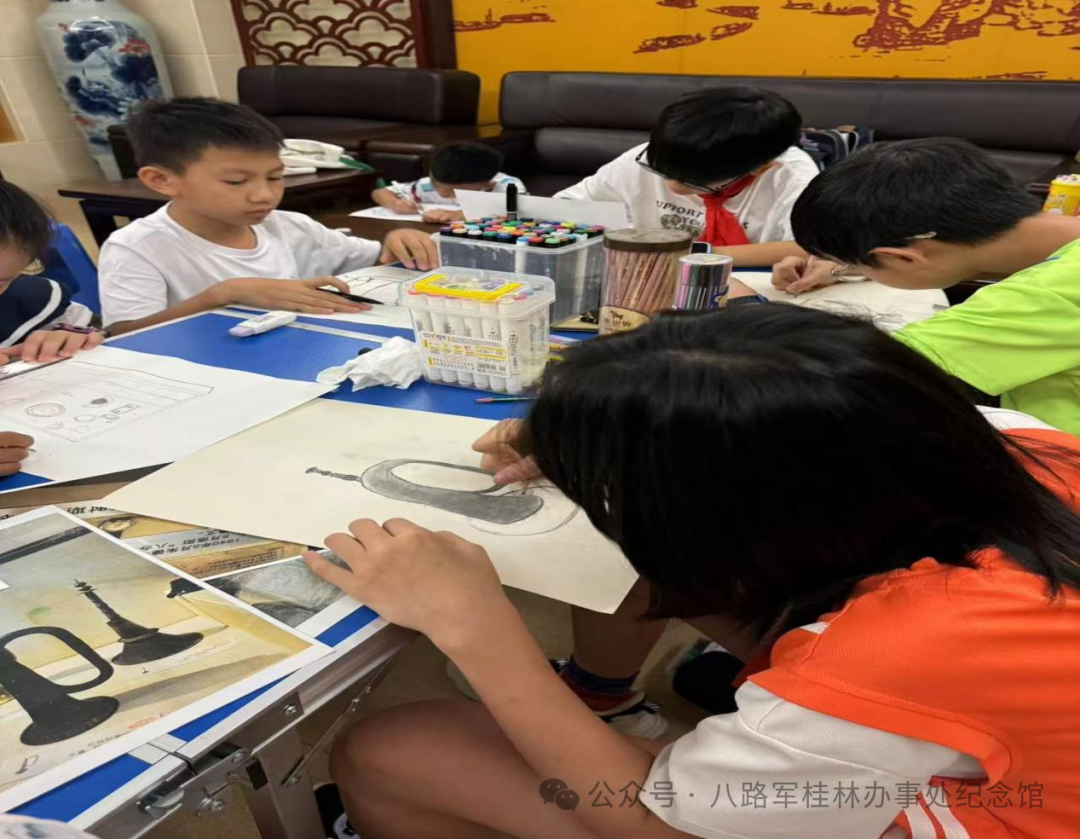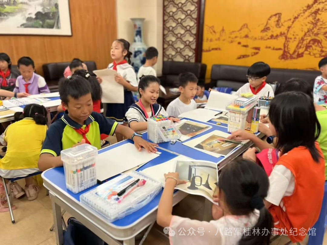 笔尖起舞绘历史,心灵手巧展童心。为了激发孩子们的爱国爱党情怀,积极引导广大青少年儿童传承红色文化,铭记红色历史。八路军桂林办事处纪念馆充分发挥爱国主义教育的职能,在暑假期间,以桂林市中小学生为主体,以多种形式开展“红色暑期·文化传承”系列研学活动。