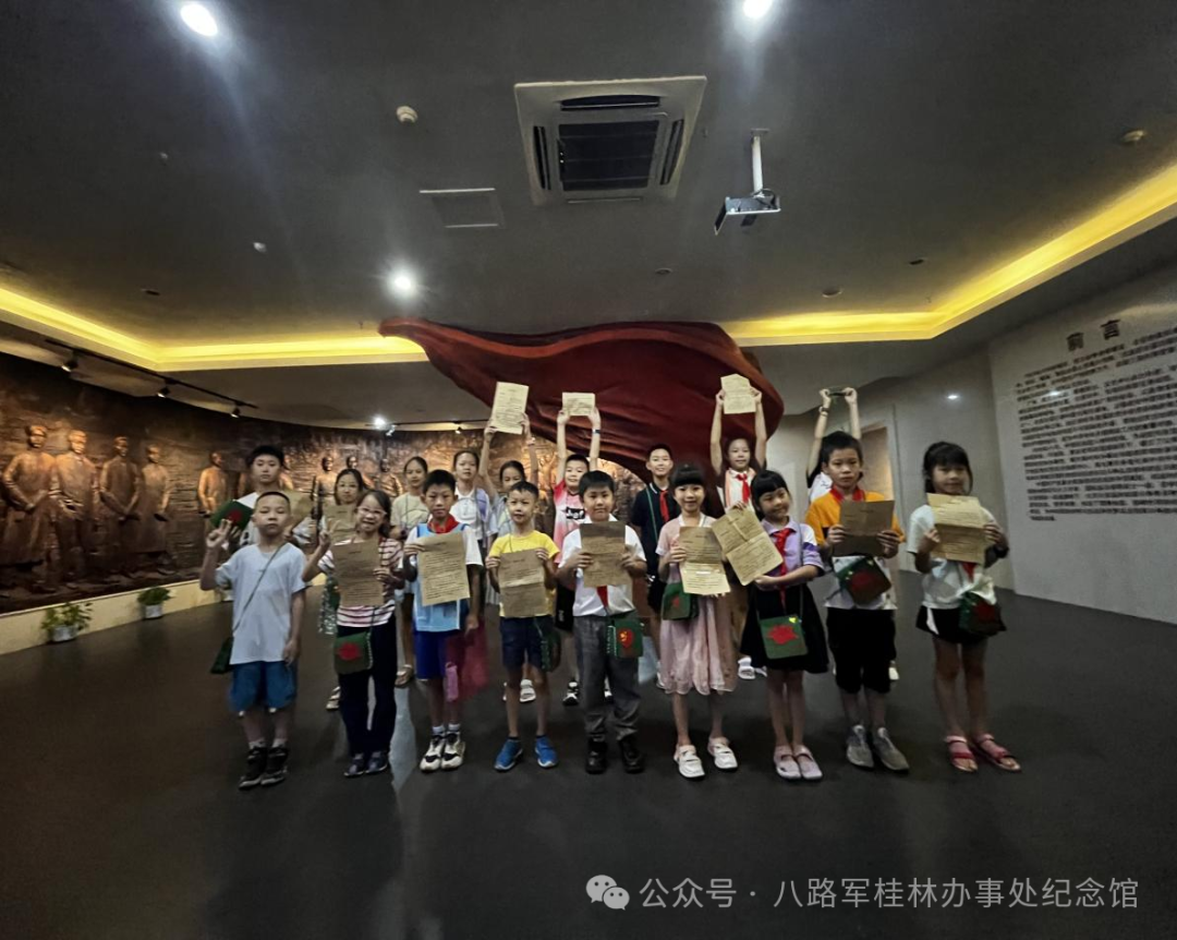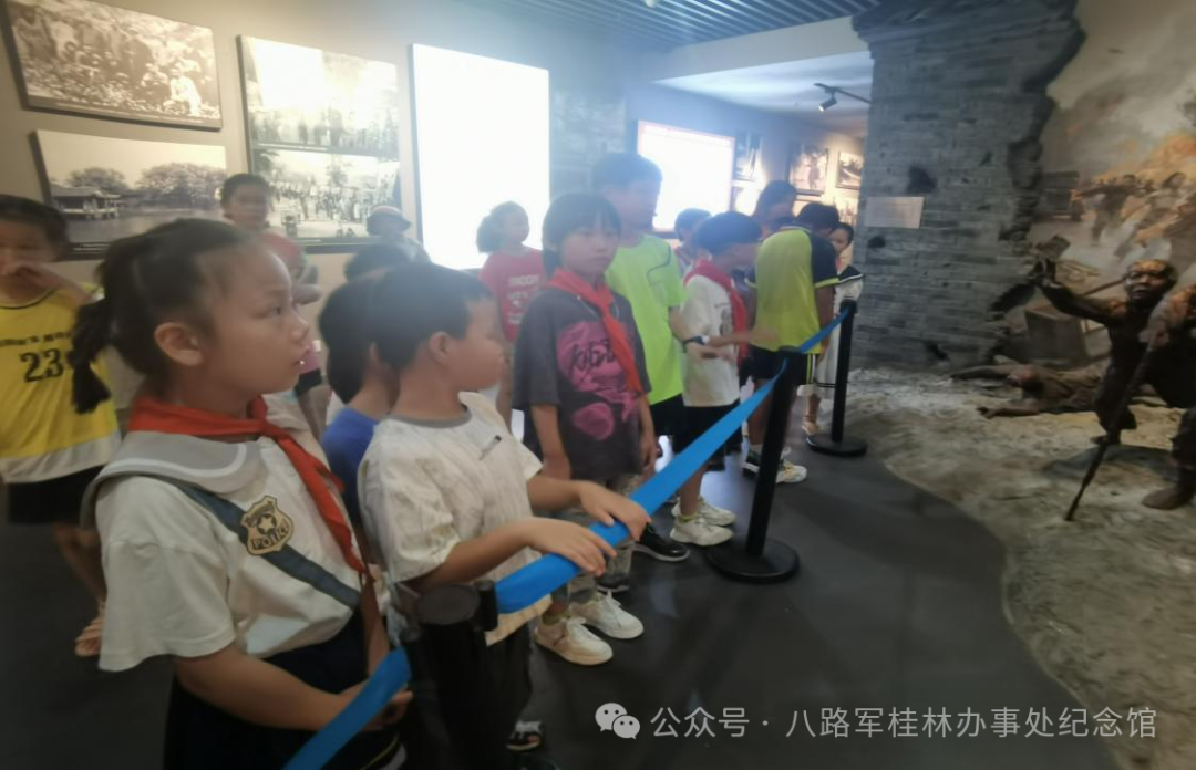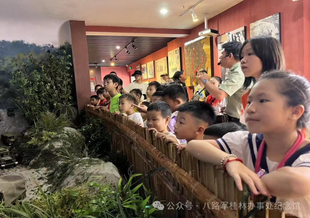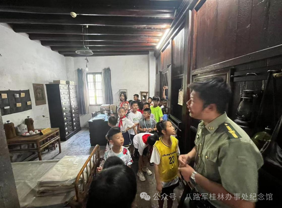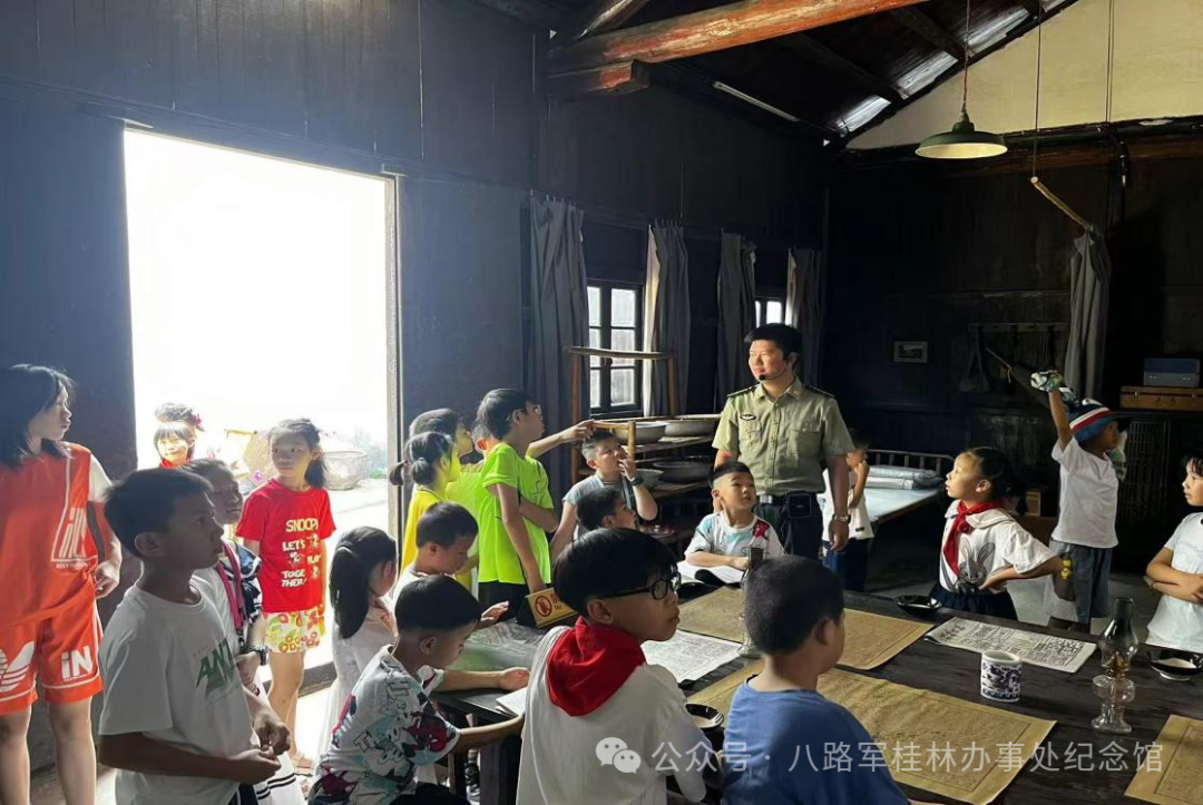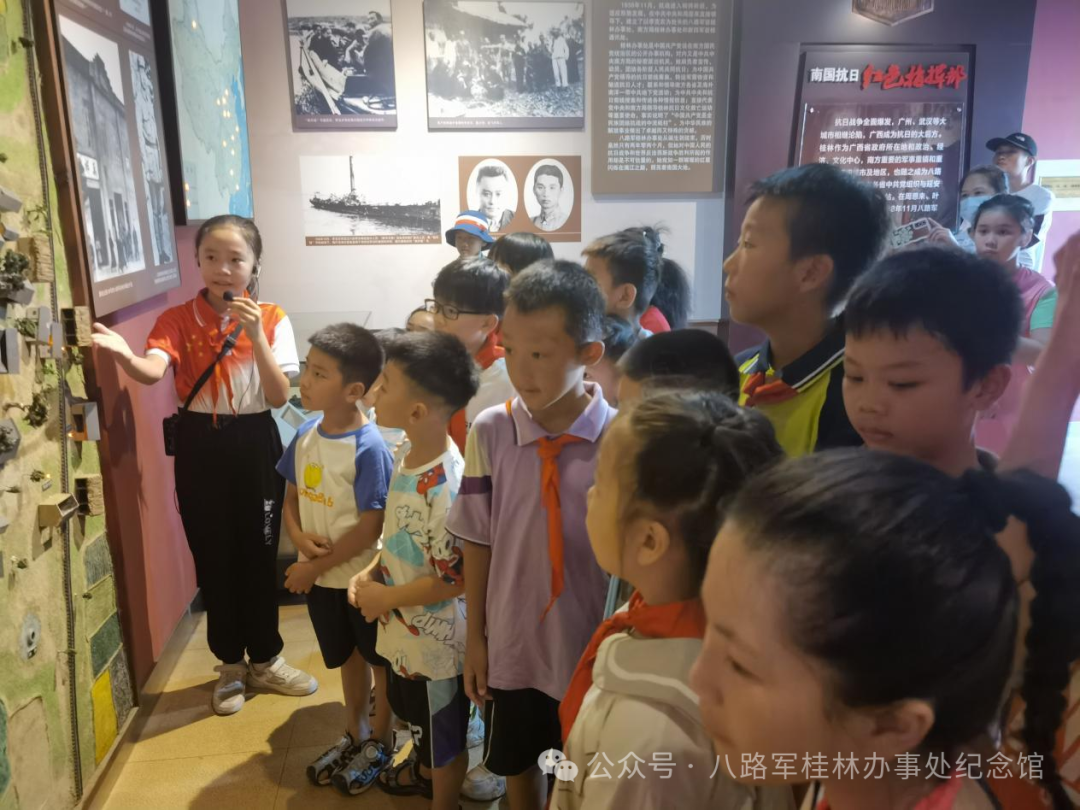 暑假期间,八路军桂林办事处纪念馆的红领巾志愿者积极发扬志愿服务精神,为来到馆内参加研学活动的孩子们进行讲解、观察文物、观看仿真场景,以孩子们的视角了解抗战时期桂林城的故事。