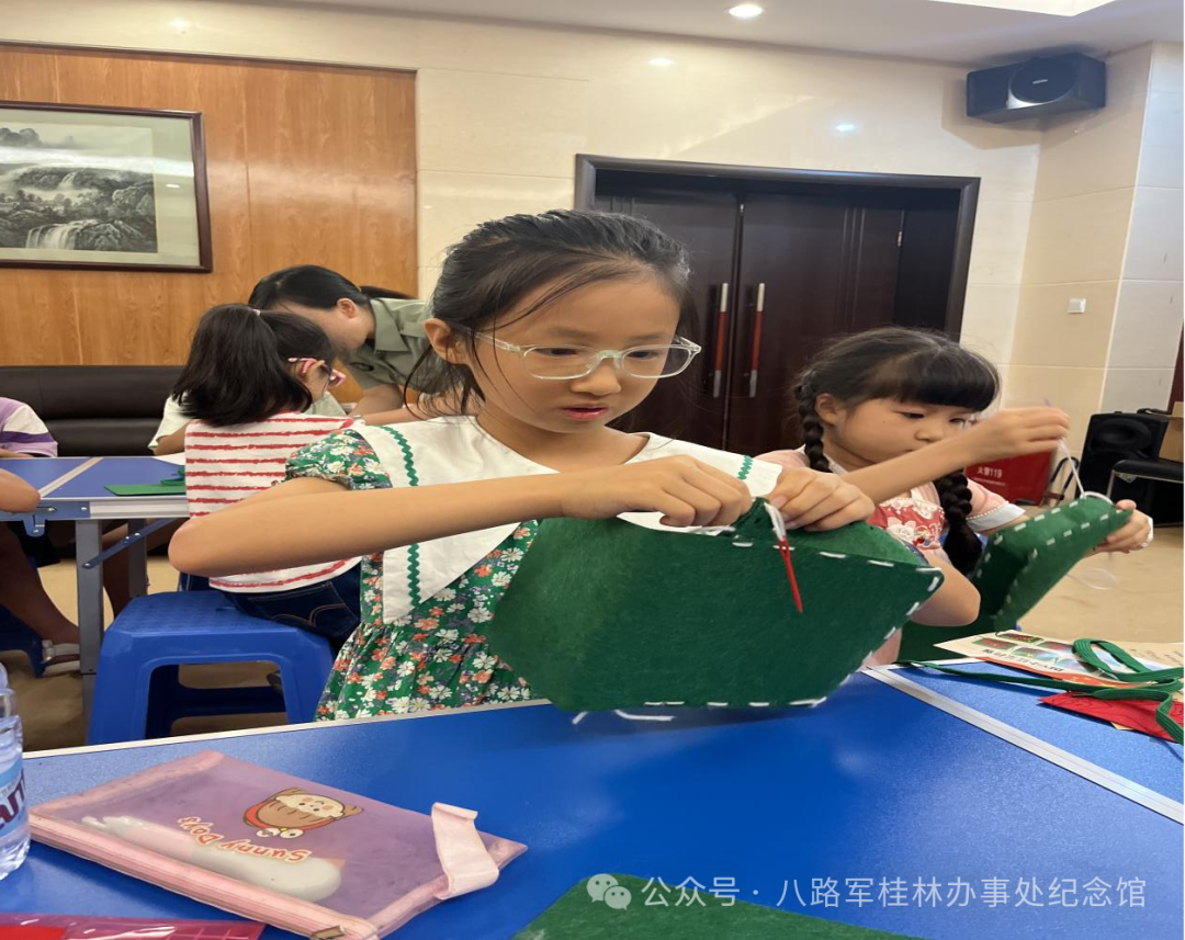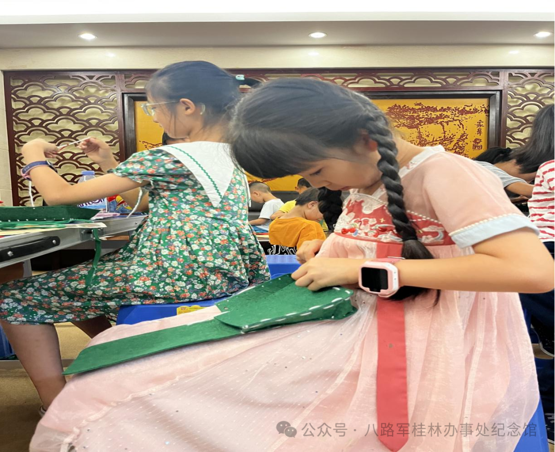 这次暑期研学活动以寓教于乐的形式,通过看、听、唱、画、做、写,充分发挥了孩子们的想象力和创造力,他们用手中的笔触和针线表达着心中的红色革命纪念馆,学生沿着历史足迹,听着英雄事,看着战斗史的同时也加深了对桂林的红色革命文化的了解。研以养心,学以博识。今后,八路军桂林办事处纪念馆将继续充分发掘、利用自身及周边资源开展红色研学活动,让更多青少年儿童心中的爱国种子萌芽与生长。