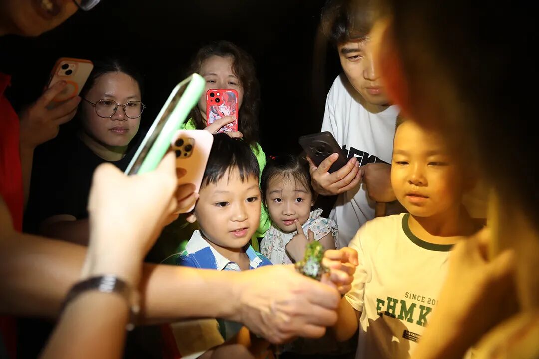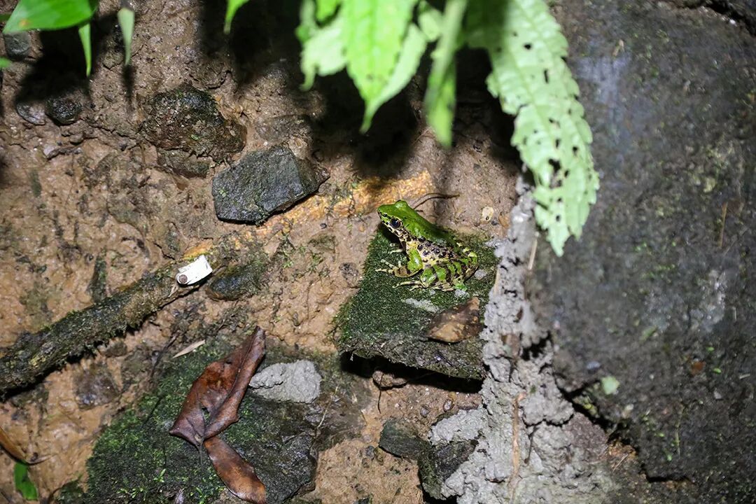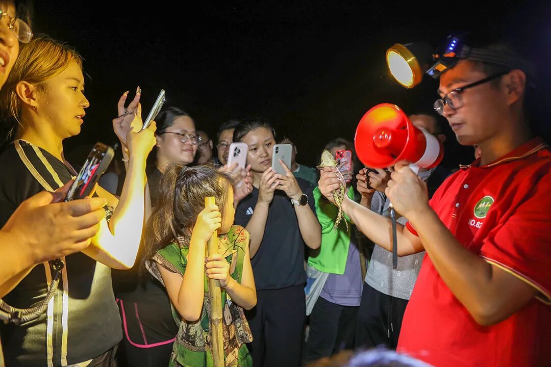 夜探过程中,大家还邂逅了国家二级重点保护野生动物仙琴蛙、原矛头蝮等珍稀物种,这些平日里难得一见的生物,在夜幕的掩护下更显神秘与生动,大家纷纷用手机记录下这些难得一见的自然界“小精灵”,并与它们来了一次亲密接触。