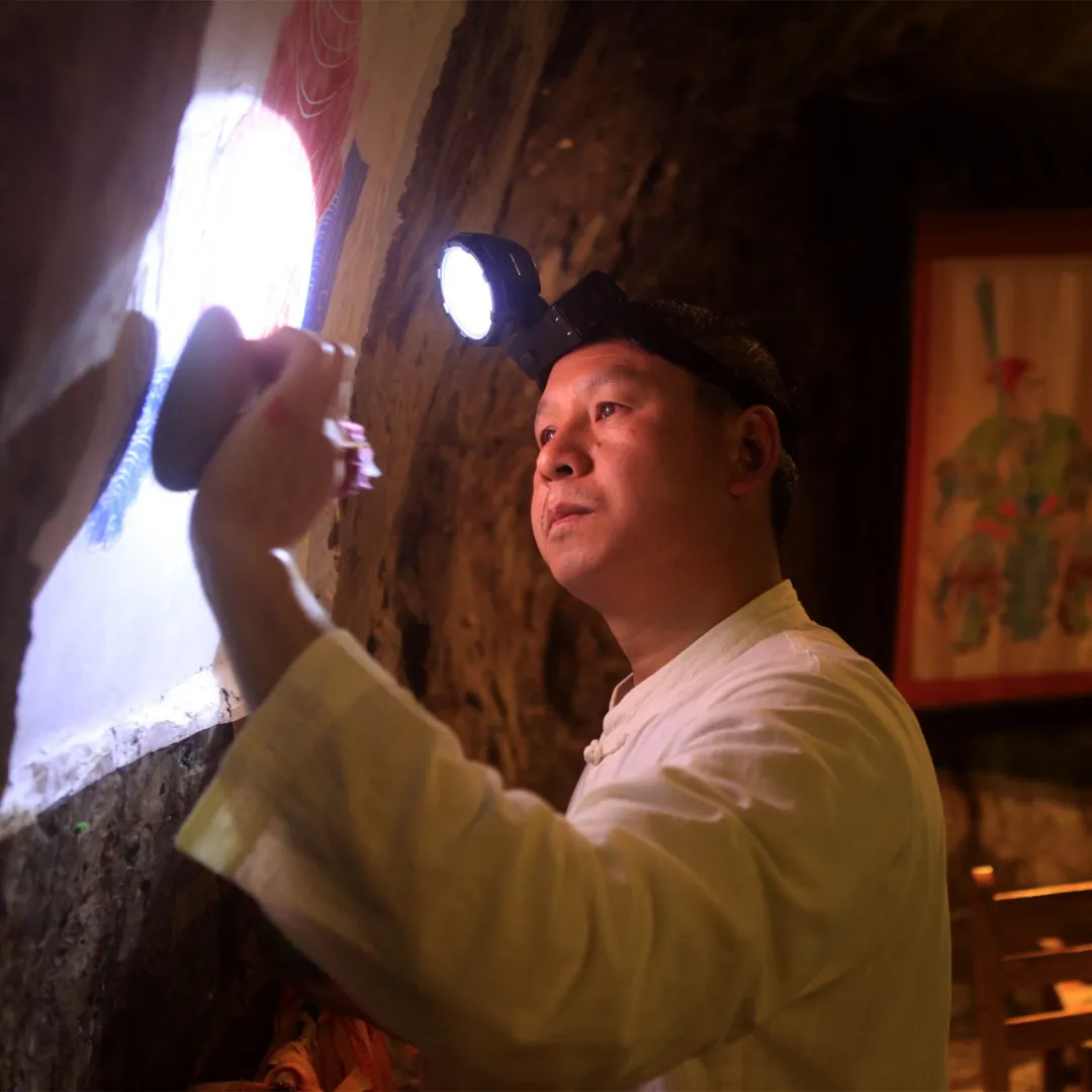 作为明代“王府秘拓”世袭匠户后人,他自幼得家族长辈口传心授,对拓印术产生了浓厚兴趣。1986年与戴东辉一起,多次走进故宫、琉璃厂、图书馆查阅学习碑贴、拓片的相关知识,进行拓印技艺的研究和实践。1996年完成了“天下第一福”字碑拓(康熙御笔福字碑拓片),翻刻了乾隆福、寿碑,观音、老虎、麒麟碑并制成拓片,用4年时间研究和拓制了一百多套作品。2001年,王继胜加入“王府秘拓”团队开始桂林彩拓的研究与传承,凭借家学渊源,他寻访搜集了大量史料,并融汇南北传拓技法特色,历经3年多恢复了明代靖江王府的彩色拓印核心技艺,将岩彩套拓、韵拓、镶拓等彩色拓印技艺重新展现于世人面前,制作工艺精美绝伦。