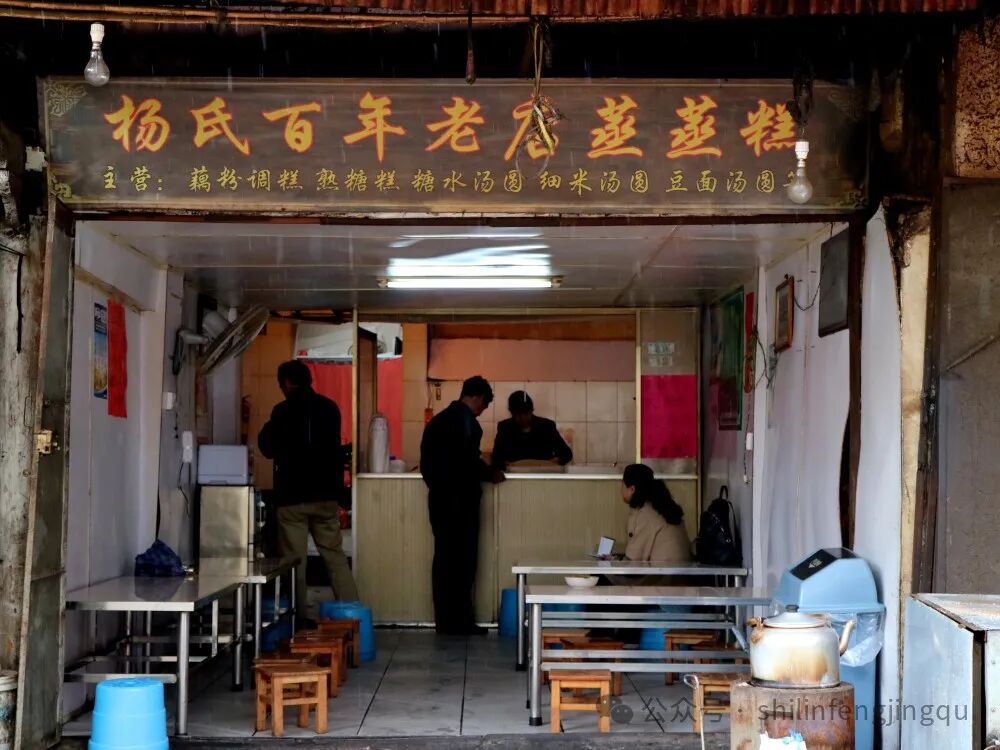 不仅如此,糖水汤圆、细面汤圆、豆面汤圆、藕粉调糕……这些店里菜谱上的配角,任何一个放到市面上都能独当一面。这家百年老店,并不热衷于浮躁的利益观念,只是专注地做好简简单单的糕点甜品,却也因此打造了我们的精神家园。在石林人的眼中,杨氏蒸蒸糕是一个广义上的概念,包罗了这个店里所有让人流连忘返的美食,包含了在此长大的孩子们对童年的情怀,寄托了身处他乡的石林人对家乡标志性的思念,也成了由它伴随长大的我们心上一根始终都在暗暗拨动的心弦。不久前的朋友聚会,聊到童年的趣事,才发现原来大家都有这么一个情结:不论是外出求学还是外出打拼,每次回家,不论有多匆忙,我们都会抽空跑去吃上一碗蒸蒸糕,否则就仿佛失了魂一样,总觉得心里空落落的。