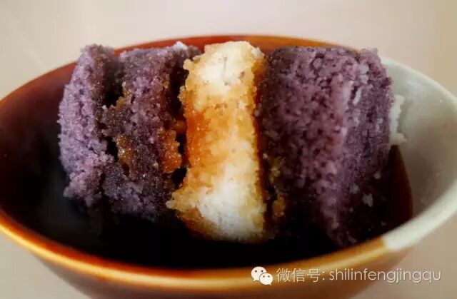 蒸蒸糕!我们一群小伙伴一边激动地呼喊着,一边飞一般地蹦跳到店里。说来也奇怪,在石林孩子和我们这些已经长大的石林孩子口中,蒸蒸糕,发音更像“沾沾糕”,人人如此。我曾探究过很久依然未果,思来想去,可能是因为大家第一次如此叫唤的时候还是口齿不清的孩子,这番走调的呀呀之语已经成为难以替代的美好回忆,等长大了,发现眼下的孩子就如我们当年一般咿咿呀呀,呵呵,那就“沾沾糕”吧。