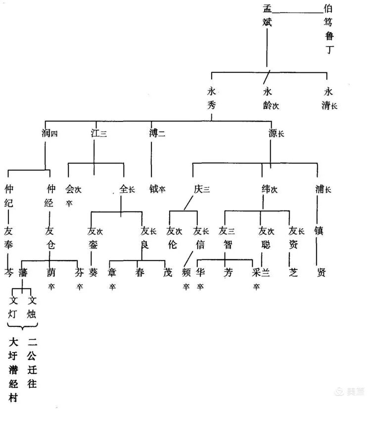 潜经村白氏与桂林白氏回族为同一来源,都是伯笃鲁丁的后人。据灵川县回族《白氏世系图》的《白氏宗旨部》载,最早定居大圩的白氏祖先白文灯、白文烛约在明朝嘉靖三十四年(1557年)前后由桂林移居大圩。清嘉庆二十五年绘刊之《桂林白氏族谱·宗族世系图》则明确记载,白氏“文焨后裔迁浔州府,文炘后裔迁北流县,文烛、文灯住大圩潜经。”《白氏族谱》亦载:“文灯、文烛,二公后裔住大圩潜经。”由此可知潜经先民在此落户立村至少已有近五百年的历史。