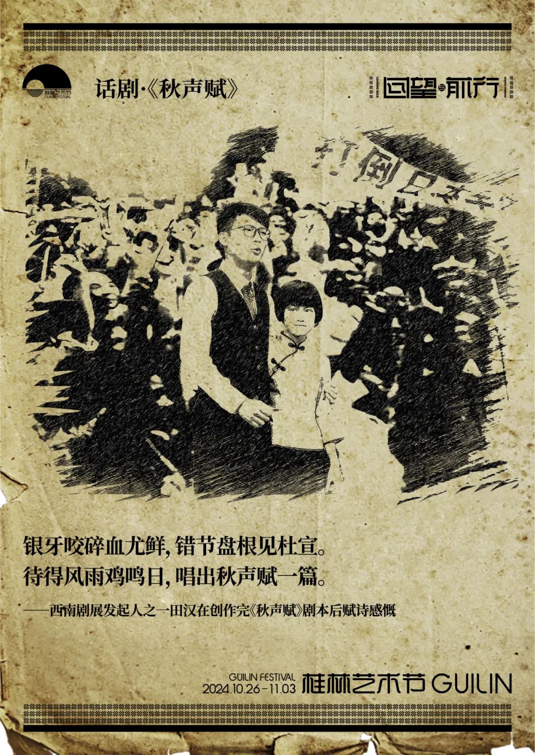抗战时期,云集桂林的文化人创作了数不胜数的文学作品,但像《秋声赋》这样有鲜明桂林特色,且在演出时轰动全城的话剧是罕见的。田汉先生创作的《秋声赋》(五幕话剧)主要以桂林文化城为背景,讲述诗人徐子羽在抗战中成长为一位坚实的人民作家的故事。该剧演出后,盛况空前,在一定程度上帮助成立不久的新中国剧社走出了经济困境。