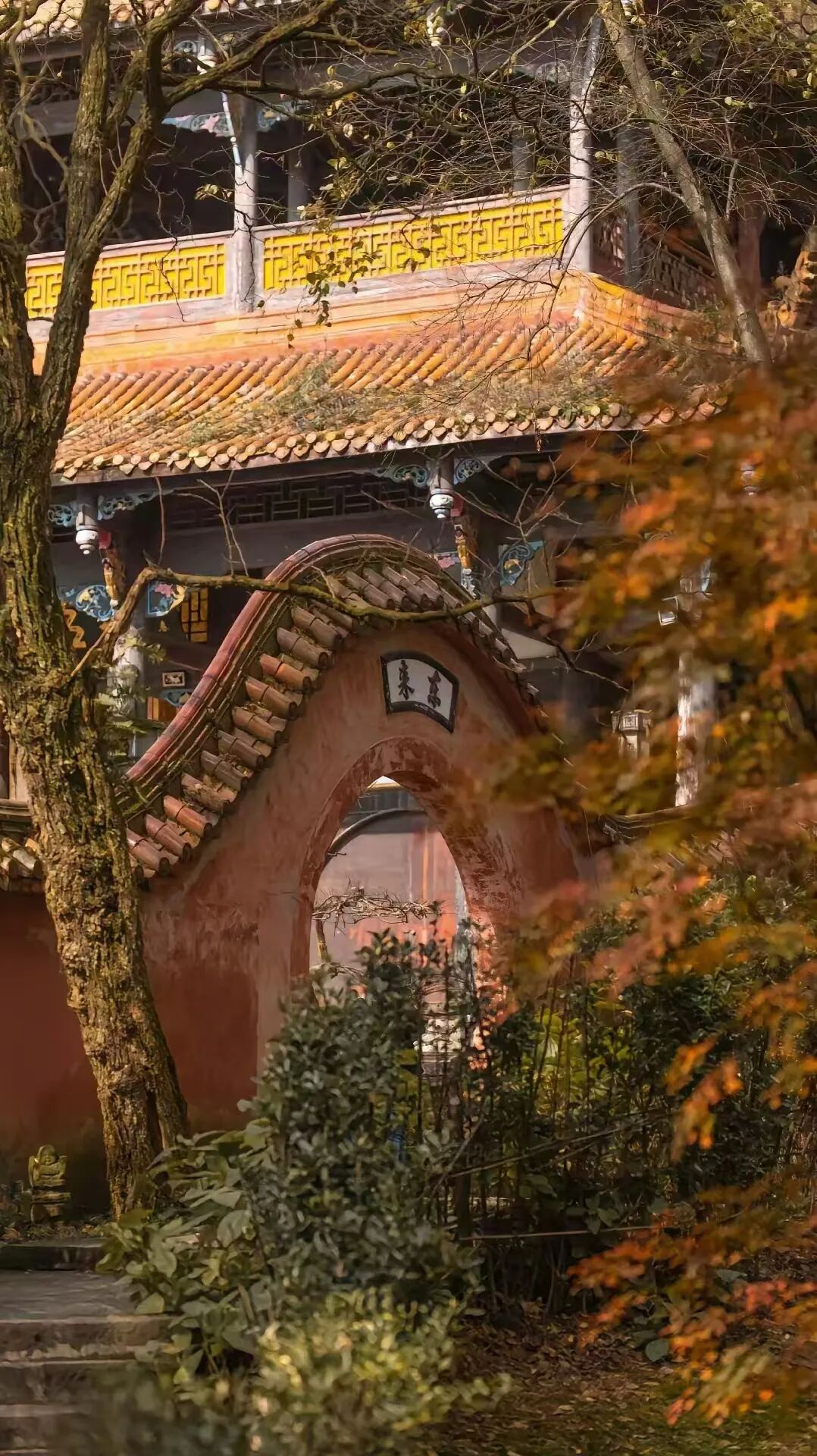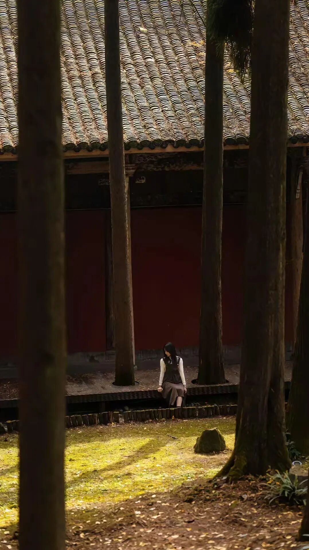 秋与冬的间隙,屋檐上,石阶上,堆满辞木的枯叶,像一段落寞的过去。冷寂的落羽杉,映衬着虔诚的香火,来者皆有所求,只是不一定如所愿。