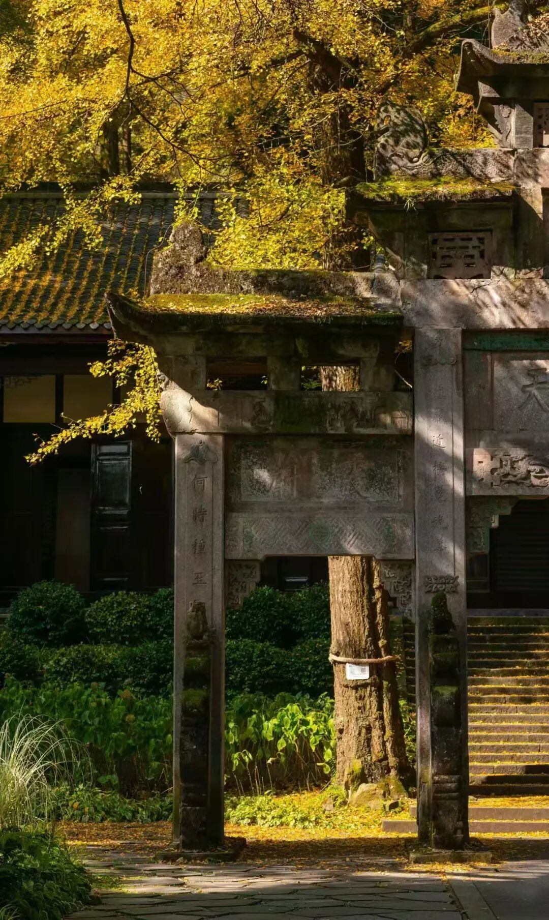 银杏遍山金黄,红杉白桦,尘封百年的苔藓森林葱郁,前人种下的古木扶翠,是经过多少的落纸云烟,才有眼前的层林尽染。
