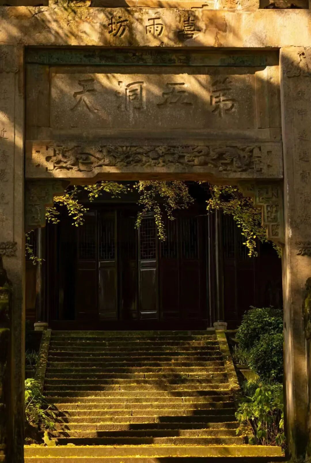 灵岩山没有山门,灵岩仙境的匾额指引上山的路,源自孙科先生“人间仙境”的题词,近似蜿蜒中的客栈名称。
