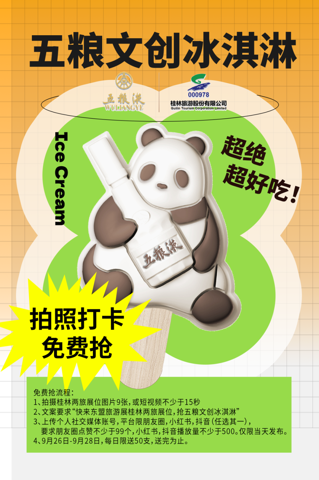 展会现场,桂林旅股邀请了三家在业务上密切合作的企业,进行联名展示,其中,与五粮液集团公司,双方在原有产品合作的基础上,正在探讨深度合作的新领域;现场五粮液还提供了文创雪糕和公司一起进行营销活动。五粮液文创雪糕现场免费送!!!千万别错过!