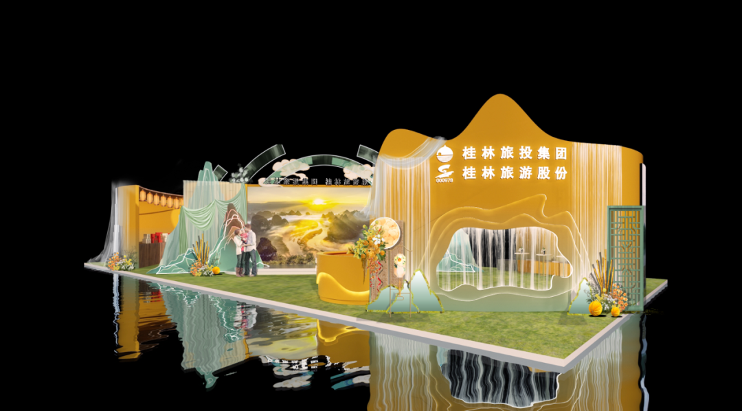 在本届旅游展区中,桂林两旅的展位面积较去年旅游展扩大1倍;在展位设计上,大胆突破,将桂林金桂月的主色调“报金玉,素风露”与新国潮风巧妙搭配,呈现桂林历史文化与桂林旅游网红元素的相结合,体验“中式浪漫的传承与唤醒。