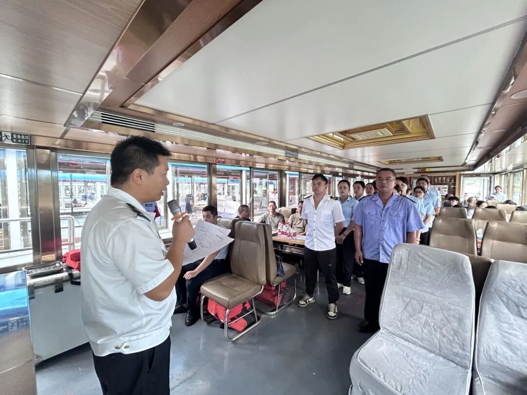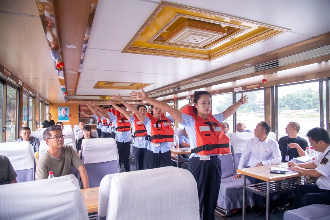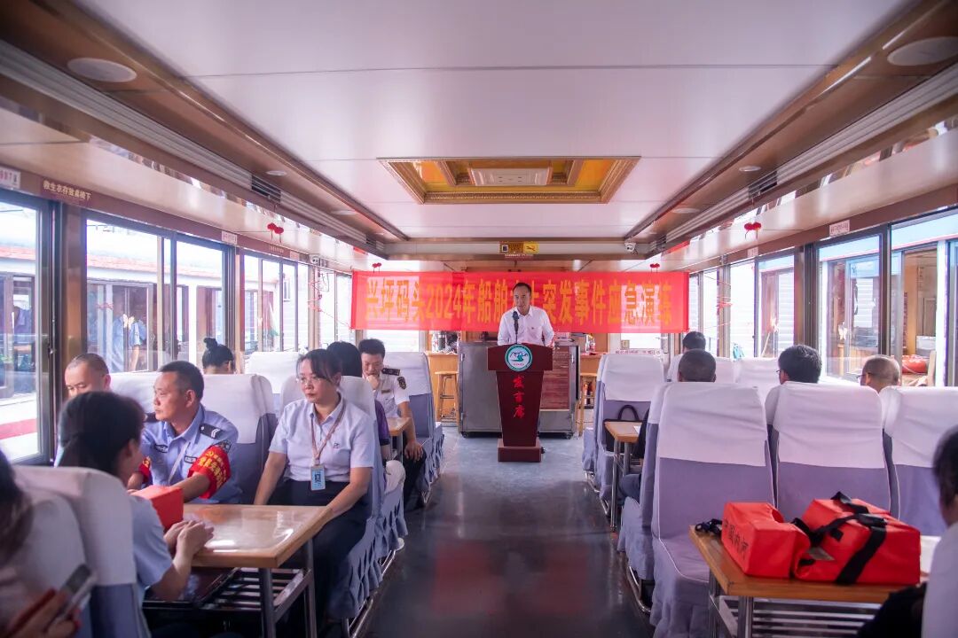 本次演练,现场随机抽取了2艘船舶参加演练考核,考核内容分别为:救生衣穿着、船舶堵漏、船舶消防、船舶救生、防抗雷雨大风五项。