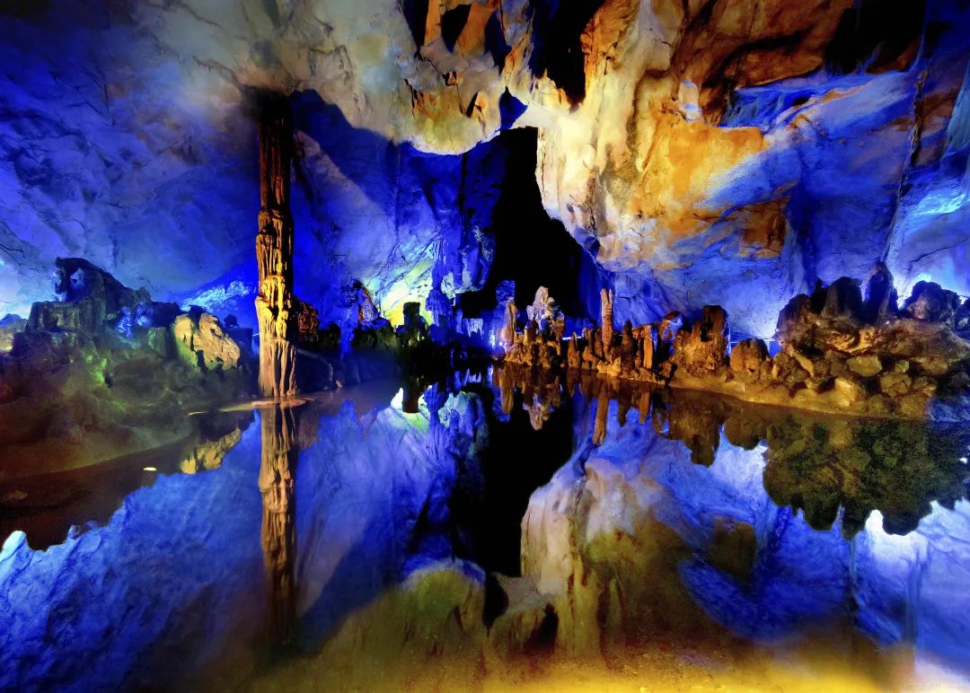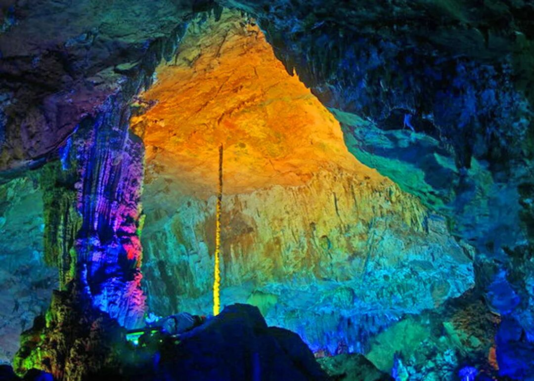 金钟山旅游度假区,桂林周边的温泉度假休闲胜地,除了千亩原生竹林,湖光山色,这里的溶洞和天坑地质奇观也是令人叹为观止。有"聚福寿之气,集万水之灵"的永福岩,是桂林目前已开发的溶洞中钟乳石种类最齐全的岩洞。乾龙天坑,则是世界上迄今发现能轻易从底部步行进入的天坑。这里天坑与溶洞相融合,穿过一段200米钟乳石巨景长廊,才能抵达天坑底部。