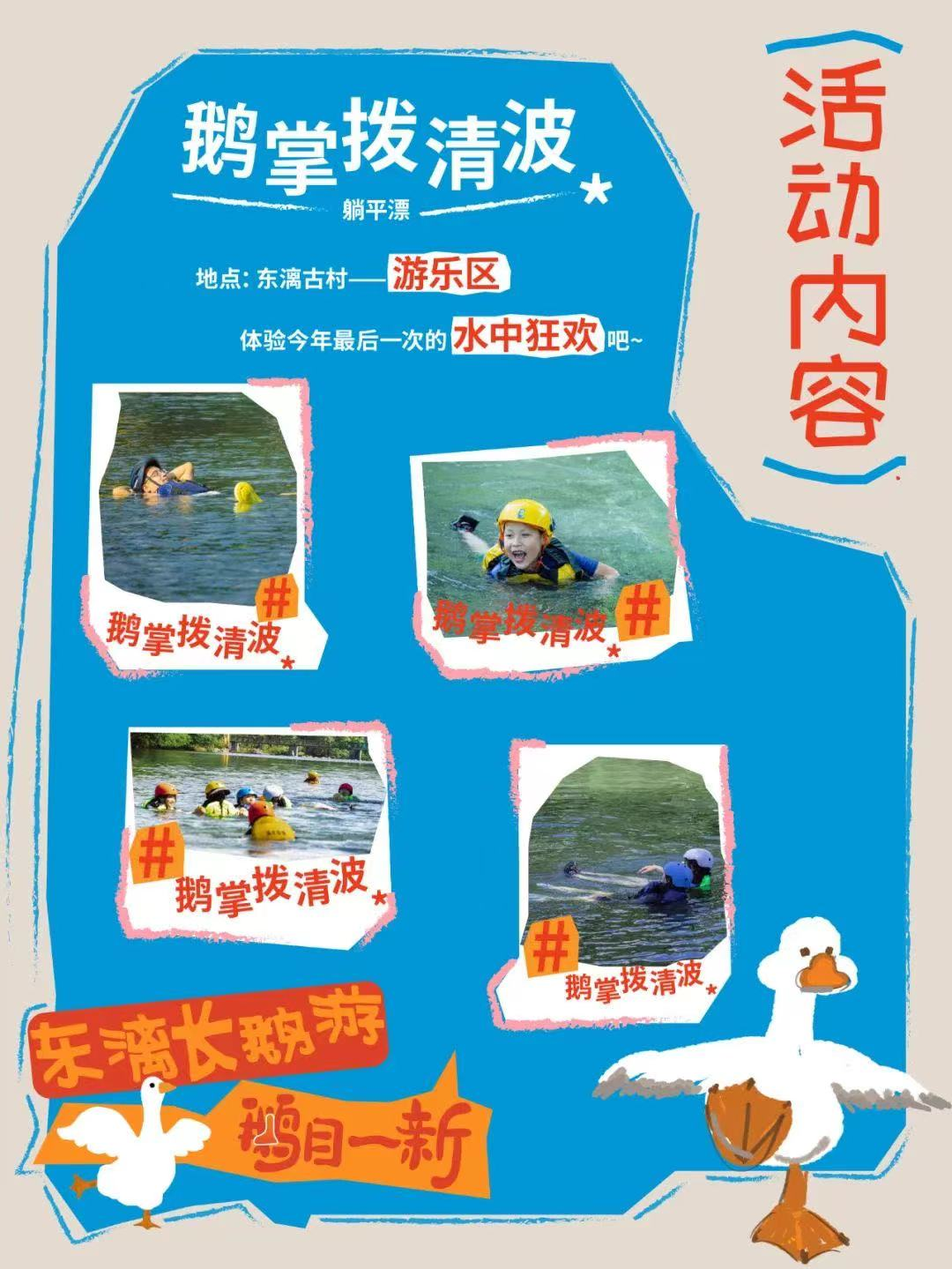 国庆期间这里的套长鹅活动和躺平漂,都是生趣不失治愈的活动体验,带个伴或和家人一起来都是极好的。产品含:①门票一张;②停车券一张;③68元同来酒馆餐费抵扣券1张;④有趣的套长鹅;③鹅掌拨清波:躺平漂。