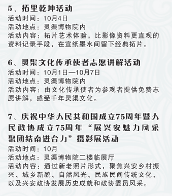 国庆古风市集,卖货郎来走街串巷,他们的货担里什么宝贝都有,和财神文化相关的手作、文创就等你来逛。地球记忆博物馆,收藏了来自世界各地的矿物晶体、陨石,带孩子来探索宇宙奥秘再好不好了。