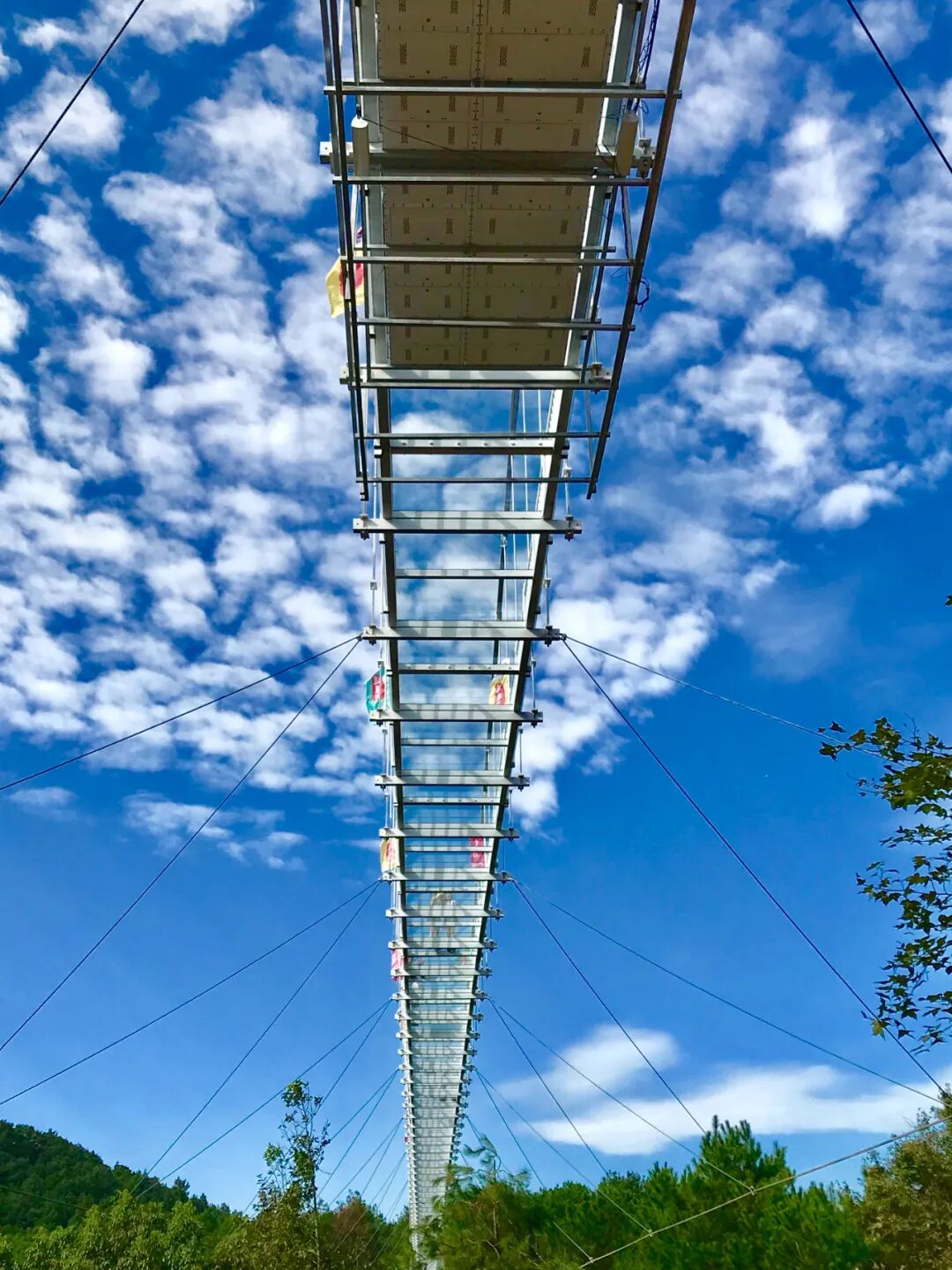 景区最为标志性的美国同款U型玻璃观景台,在700米高崖壁上悬空,宽阔视野和刺激体验,令人称奇。