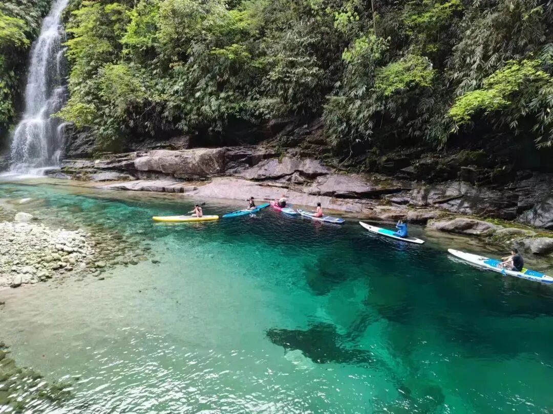 这里素有“桂林小九寨”的 美誉,一汪果冻水宛如上帝掉落人间的翡翠,清澈见底,是潜水、浆板的不二之选。