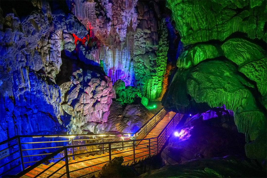 荔浦丰鱼岩景区,国家AAAA级景区,世界旅游组织推荐的旅游目的地。这里有被誉为“亚洲第一洞”的丰鱼岩溶洞,享有“暗河漂十里,一洞穿九山,妙景绝天下”之美称。国庆期间,丰鱼岩国潮不夜城活动启幕,国潮彩灯穿越古朝,比特效还震撼的非遗打铁花点亮夜空,篝火晚会带你尽情舞蹈,潮酷夜市让你流连忘返。