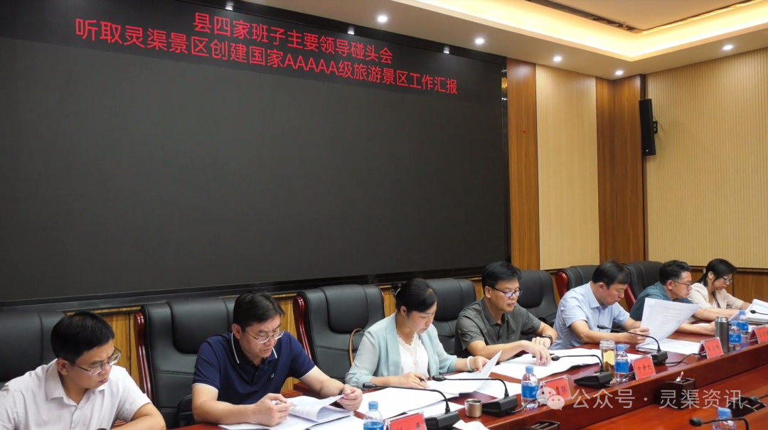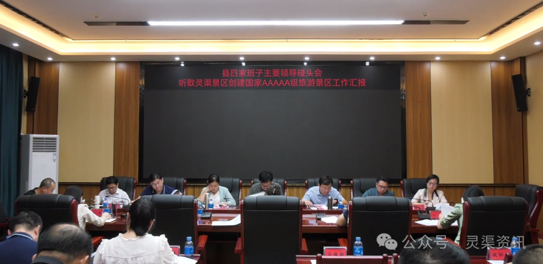 9月27日下午,贲黄文、韦远明、庄慧琼等在家的县四家班子领导在县会议中心202室召开县四家班子主要领导碰头会,听取灵渠景区创建国家AAAAA级旅游景区工作汇报,共谋灵渠景区国家AAAAA级旅游景区创建蓝图,全力推进全县旅游高质量发展。