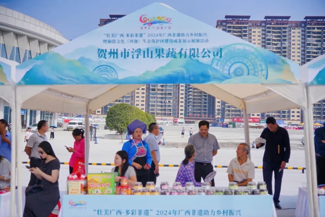 开幕式活动现场设有广西非遗特色展位,贺州特色非遗文创产品和美食亮相其中。