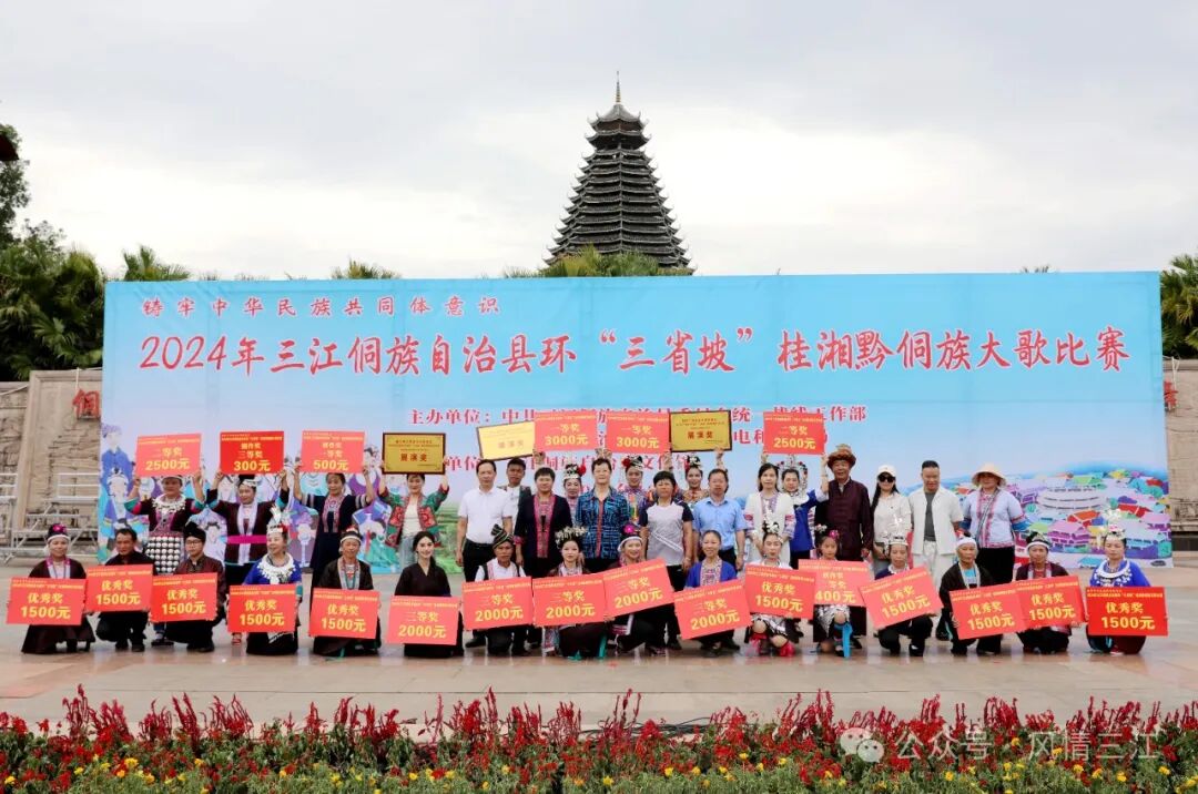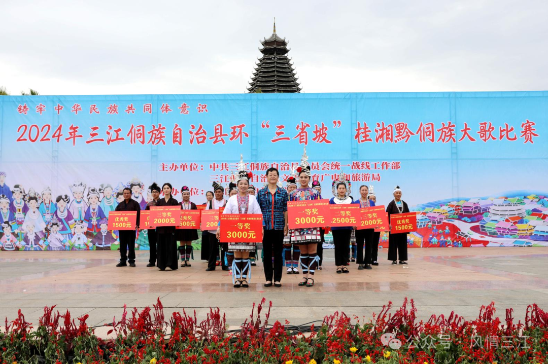10月2日,2024年三江侗族自治县环“三省坡”桂湘黔侗族大歌比赛在三江县城多耶广场举行,来自广西、湖南、贵州等地的26支参赛队800余名歌手同台竞技,一展歌喉,倾情祝福伟大祖国繁荣昌盛,尽展侗乡非遗多彩魅力。县委书记贺莹、县人大常委会主任石祖芝,县领导郭善习、邱阳军、吴隆参加活动并为获奖队伍颁奖。