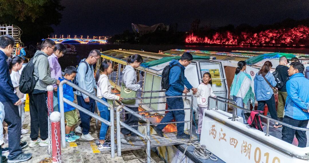 国庆期间,两江四湖景区人头攒动、热闹非凡,景区围绕“国潮”文化主题,带领游客共赴一场多姿多彩的文化之旅。