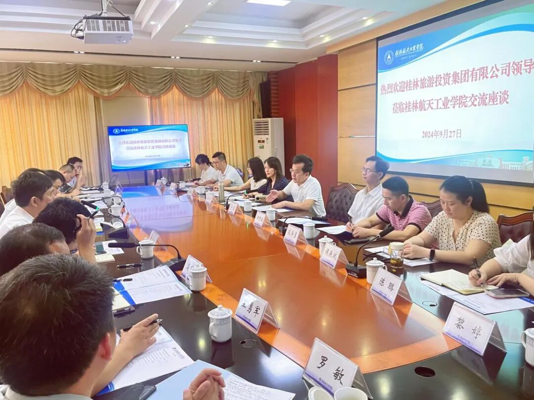 近日,桂林旅游投资集团有限公司党委书记、董事长宁志一行到访桂林航天工业学院,与桂林航天工业学院校长吴尽昭等专家教授就开展“低空旅游”校企合作深入交换意见。