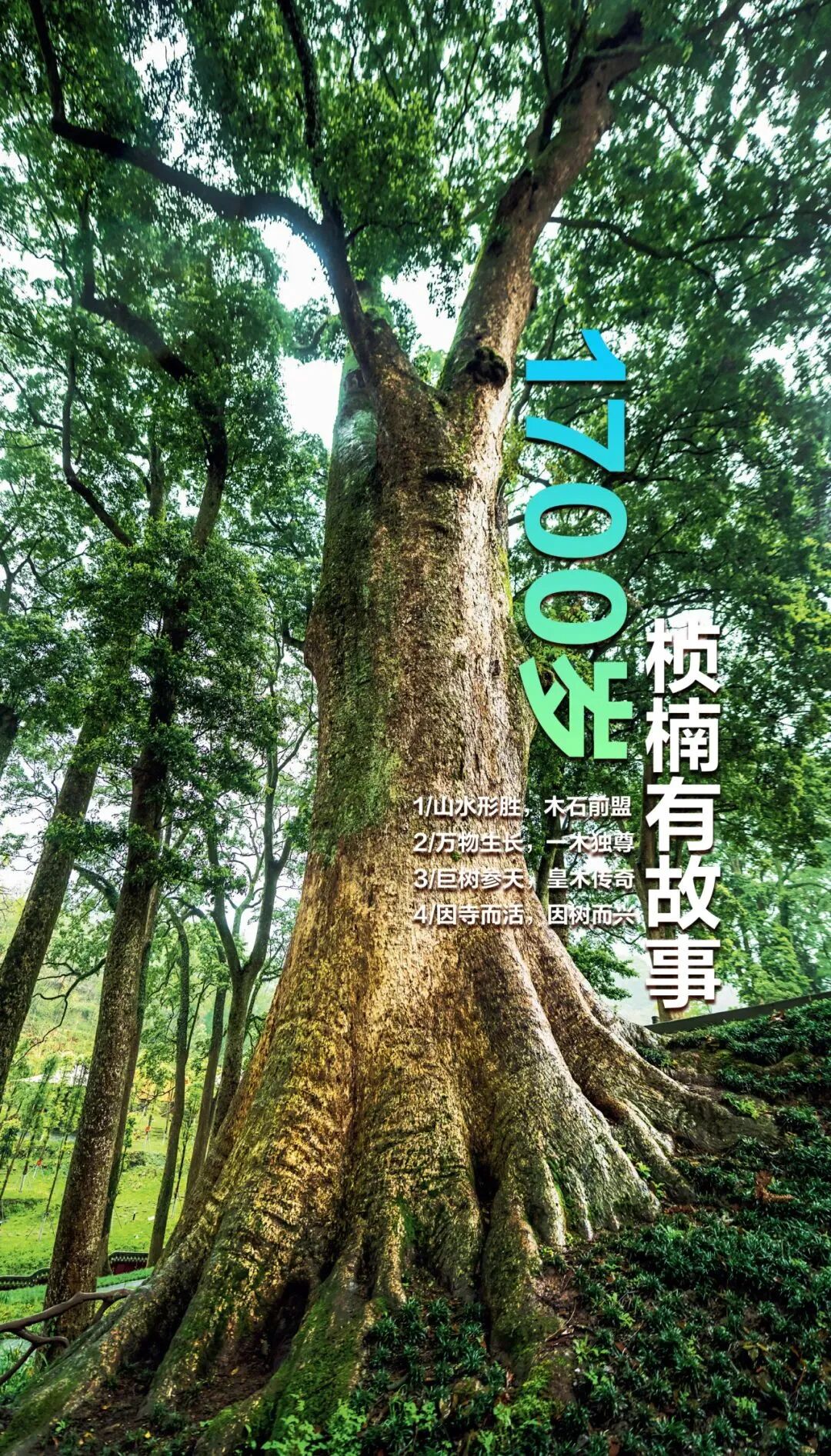 站在有着1700年树龄的古桢楠树面前,尽管心已有所备,仍然被它粗壮挺拔的气势所震撼。