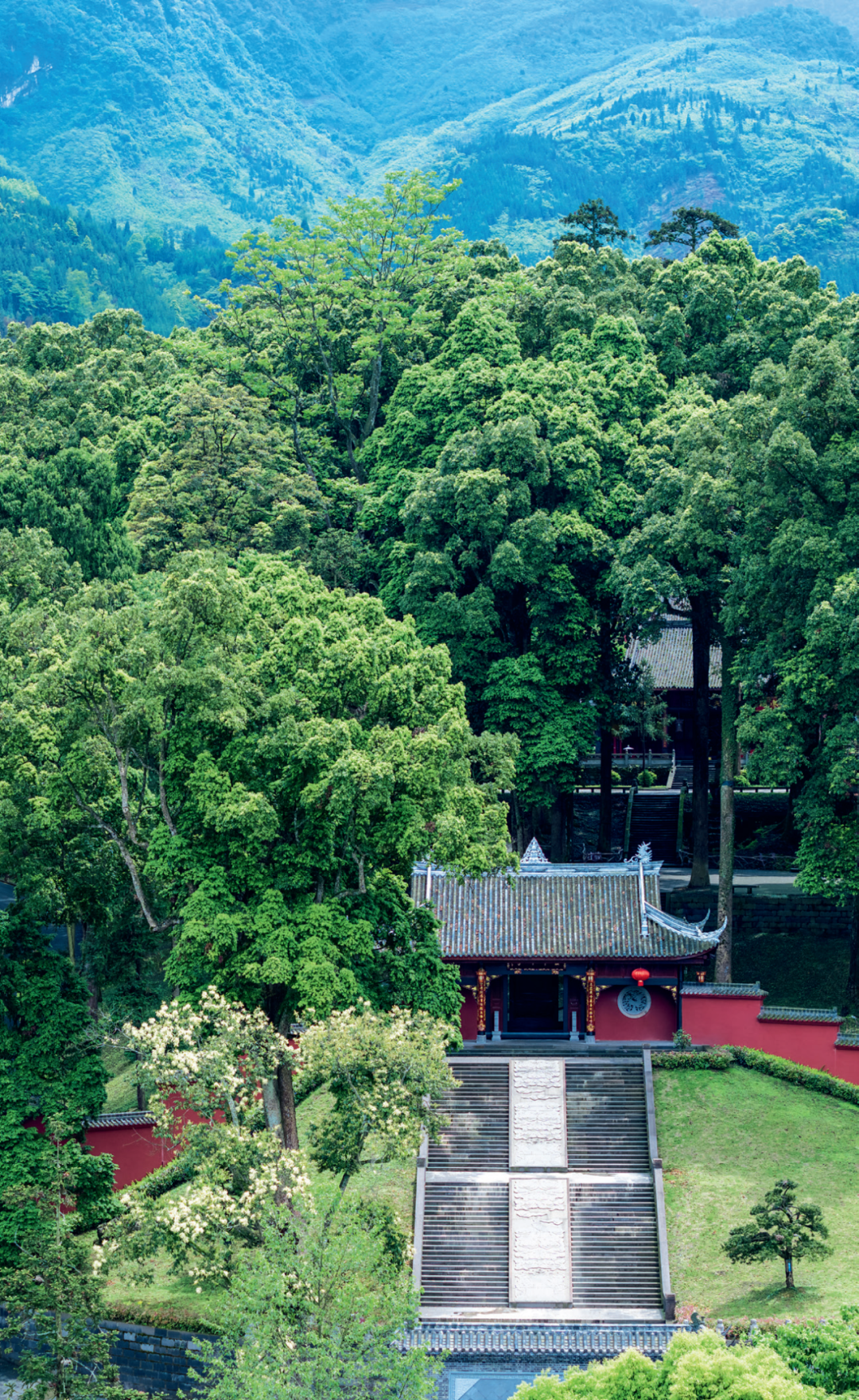 值得欣慰的是,100多年以来,雅安的生态系列仍保持最原真的完整性,森林覆盖居四川省第一,青衣江的水质位居全国第一,空气质量多次位居四川省之首。在荥经,人们还发现了世界最大的野生珙桐群落,面积超过30万亩。这就是云峰寺古桢楠群落能在这里开枝散叶,千百年来生生不息、枝繁叶茂的地理机会。云峰寺门前的这两棵 1700年的桢楠王,既是大自然留给这里最好的生态赞歌,也是进入“绿美雅安,熊猫家园”的自然之门。
