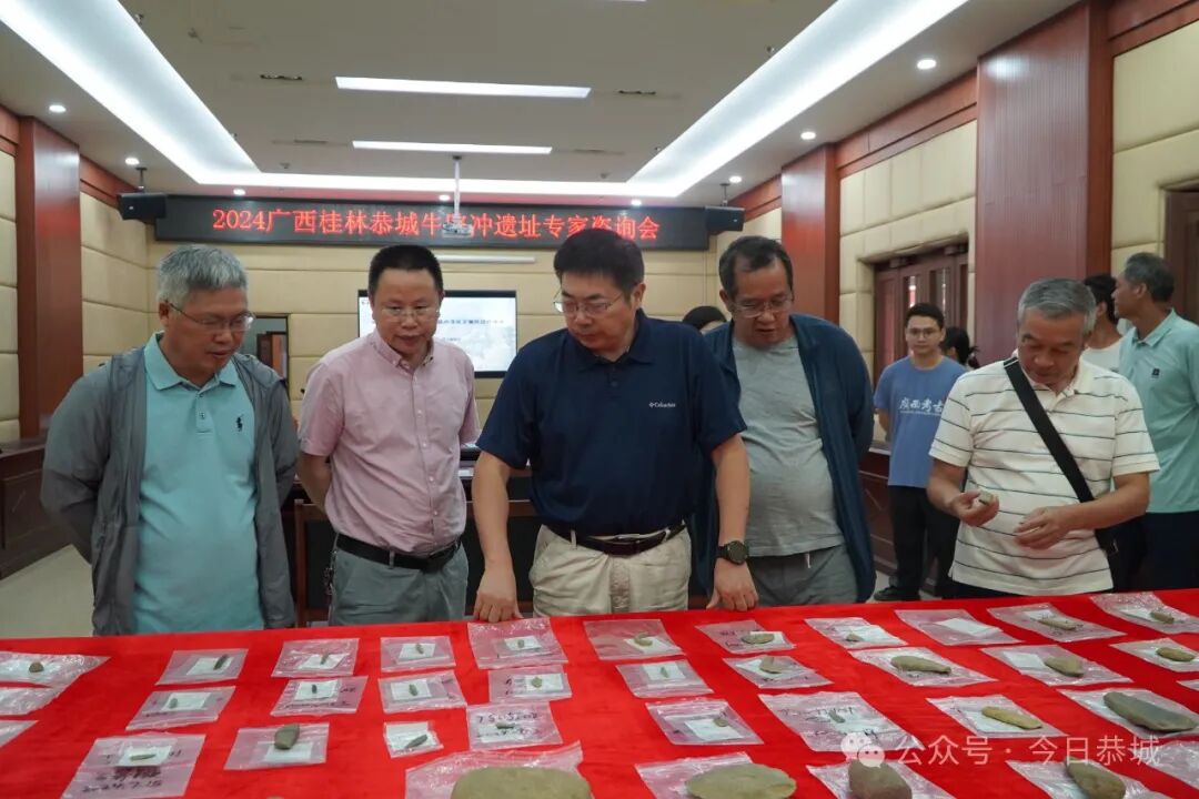 近日,恭城牛路冲遗址考古有了新发现,考古发掘队特邀专家现场考察发掘现场,并召开咨询会,与专家交流讨论牛路冲遗址时代、性质以及下一步考古工作。