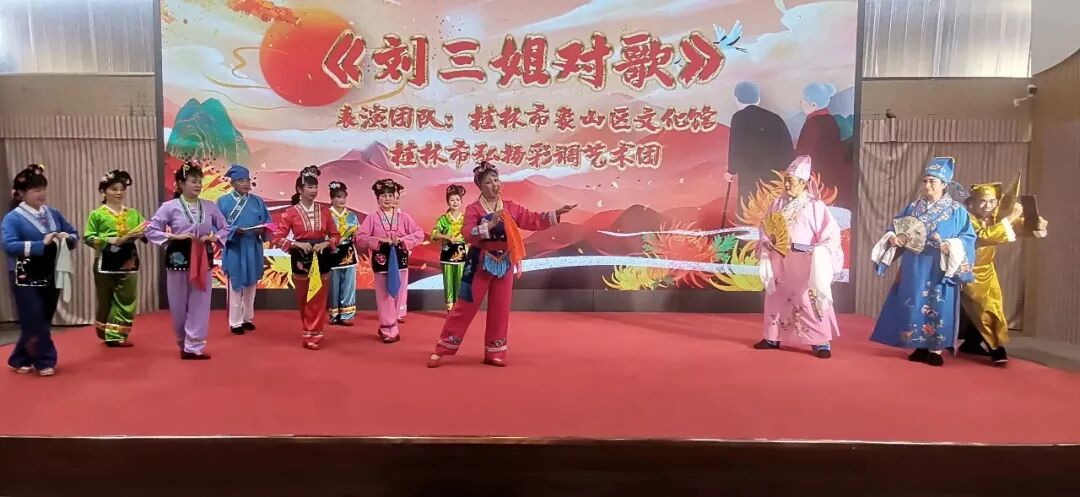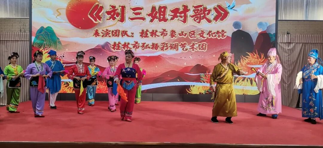 此次活动由桂林市弘扬彩调艺术团倾情演出,他们的表演声情并茂、活灵活现,为观众们献上《刘三姐对歌》、《仙境怎比我桂林》等经典剧目,演出现场气氛热烈、掌声不断。