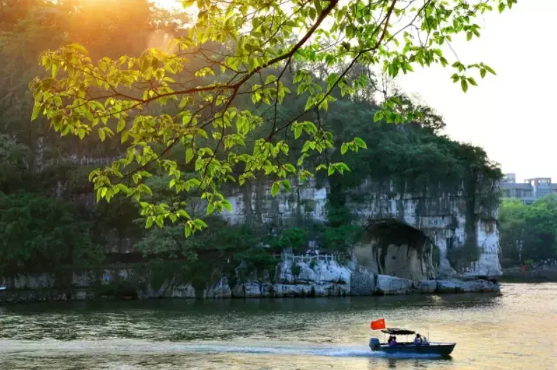 訾洲岛,位于百里画廊漓江核心区,是漓江上最著名的一座洲岛,是观赏城徽象鼻山的历史起源之地。訾家洲与象鼻山隔江相望,四面临水,翠竹成林,茂林深处广辟庄苑,多建亭台楼阁,遍种名花异草,自唐代以后便是游人乐赏之地。春日的“訾洲烟雨”和秋日“訾洲红叶”都是桂林有名的醉人景致。