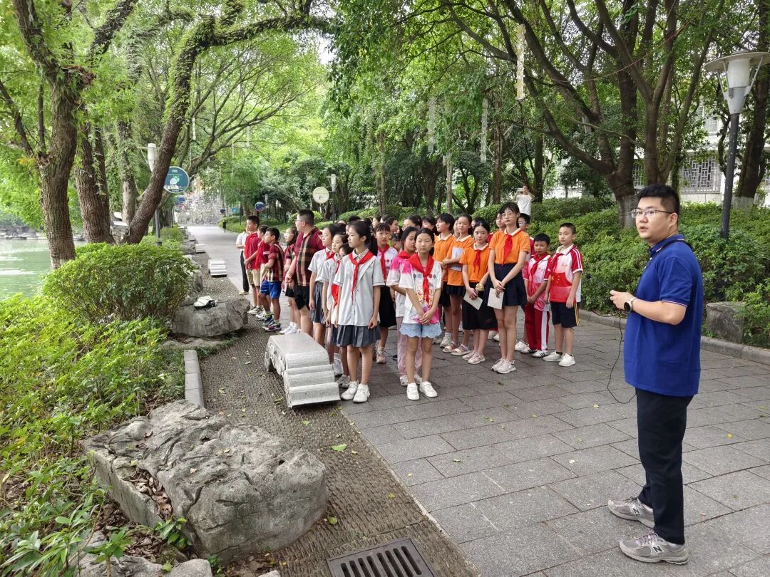 近期,桂林市榕湖小学的同学们在老师的带领下,来到两江四湖景区榕湖畔,现场观看了桂林漓江(两江四湖段)水质提升和生态修复工程榕湖水域的施工现场。