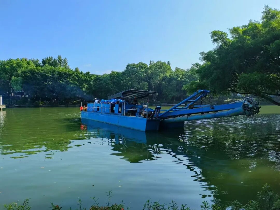 通过项目组工作人员的介绍,同学们了解到了绞吸船如何绞散湖底的淤泥,并通过管道将淤泥输送到岸上进行处理,这样既保护了水质,又不影响游船的航行。生动的教学活动,让同学们在实践中对桂林两江四湖景区的水质提升项目有了更深入的了解,学习到了很多课外知识,增强了环保意识,同时也让他们更加了解和热爱自己的家乡,还通过互动问答的形式,激发了他们的学习兴趣。有的同学甚至能够用自己的话来描述所学到的知识,体验了一回当小老师的感觉。
