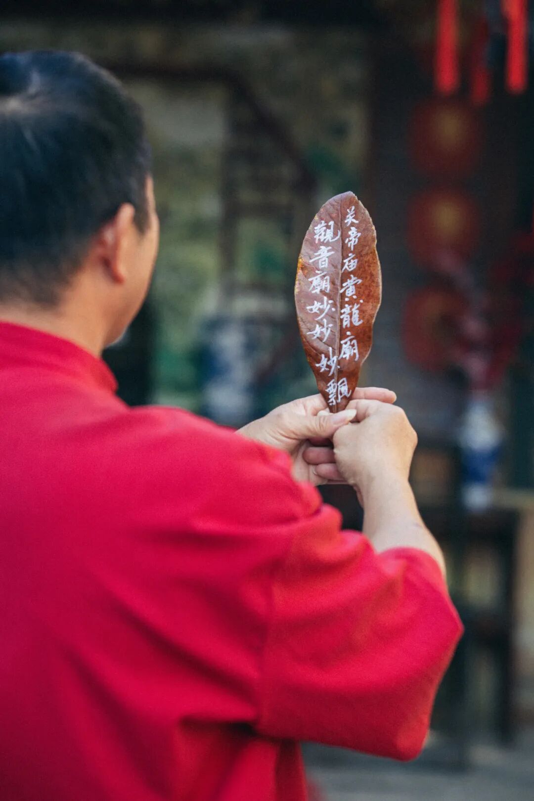 秋阳融融,透过庙宇的屋檐,洒在李禄坤的身上。村里人都叫他飘哥,他既是村里关帝庙、黄龙庙、观音庙的庙祝,更是东漓古村的灵魂人物,承载着村民们对生活的祈愿与仪式的传承。他每天穿梭于庙宇之间,将老旧的屋檐、风化的木雕一一细心擦拭。他说,庙里的神像、香炉、青砖灰瓦都是有“灵气”的,只有庙宇整洁明亮,才会让村民们进庙时心安,也能带来福运。