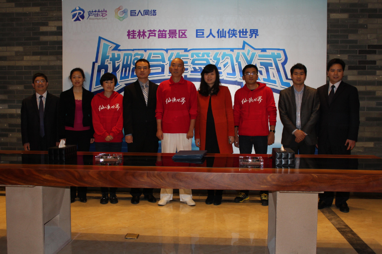 巨人网络董事长兼CEO史玉柱参加了发布会,见证了此次合作。巨人网络副总裁、《仙侠世界》制作人丁国强表示,桂林芦笛景区作为国内著名岩洞景区,享有大自然艺术之宫之称。芦笛景区与网络游戏这个新兴行业相互合作,必将构筑丰富的体验组合,是旅游和文化产业结合的典范案例,对促进双方共同发展,都具有重要而深远的意义,未来将与桂林旅游发展总公司旗下其它景区探索更深入的合作。