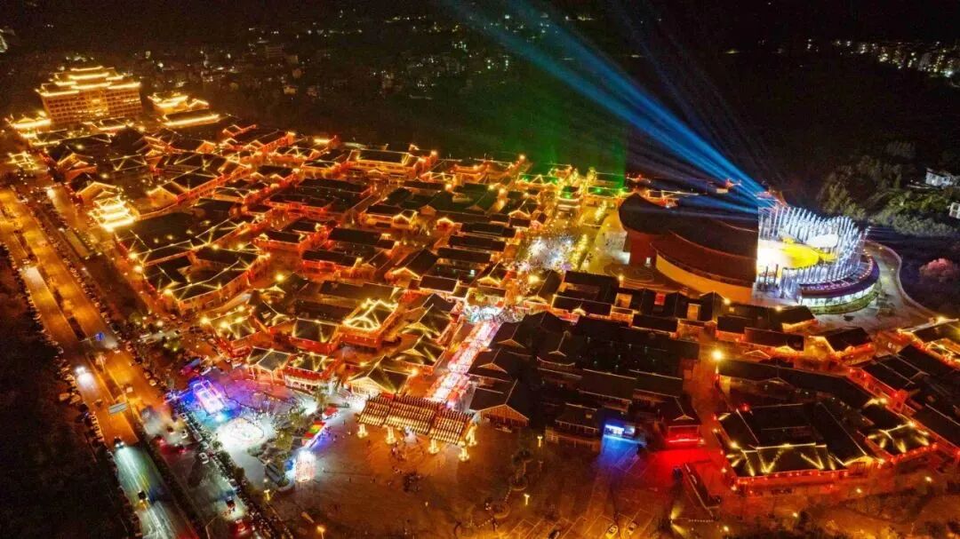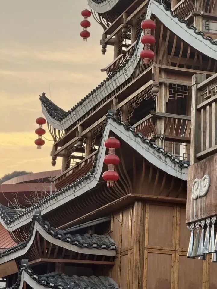 夜晚,风情苗乡景区变得如梦似幻。古朴的建筑在霓虹灯的映衬下,更显神秘与韵味,红灯笼在夜风中轻轻摇曳,仿佛是苗乡的精灵在诉说古老的传说。