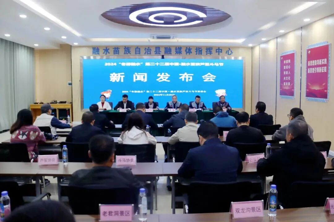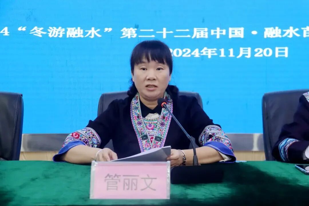 11月20日,融水苗族自治县举行2024“冬游融水”第二十二届中国·融水苗族芦笙斗马节文化旅游活动新闻发布会,宣布将于11月23日至24日举办2024第二十二届中国·融水苗族芦笙斗马节活动,介绍本届融水苗族芦笙斗马节的文旅活动内容及看点。县委常委、宣传部部长管丽文出席发布会。