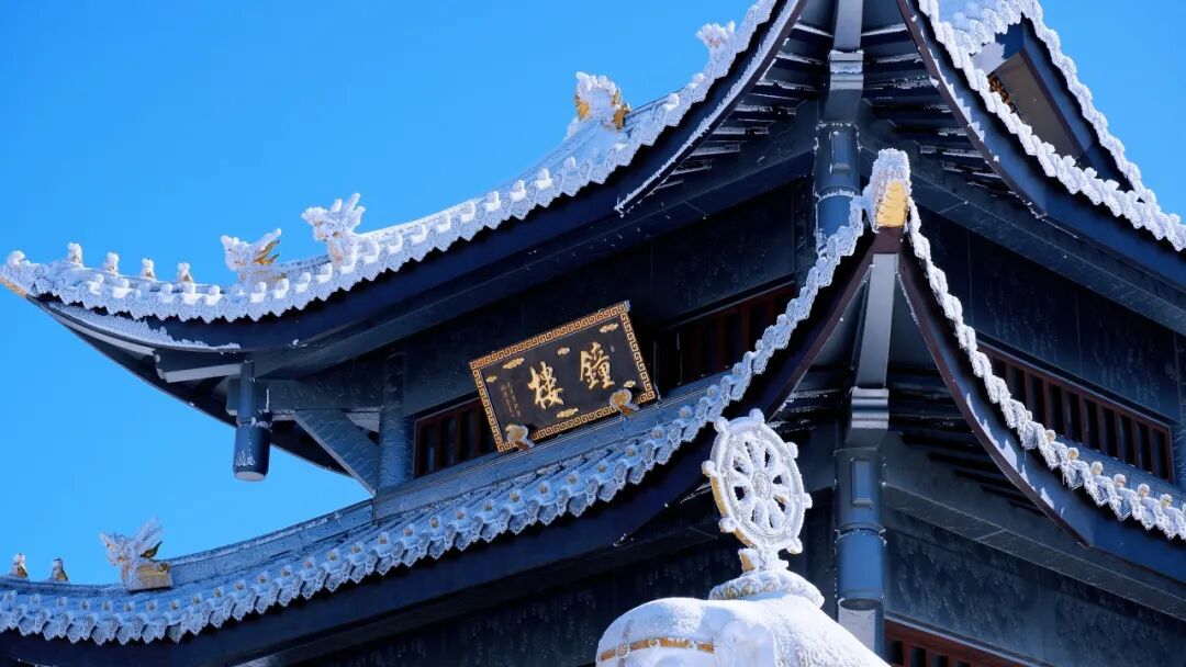 寺庙的飞檐翘角被雪温柔地包裹