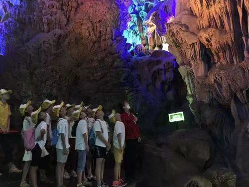 这群孩子在参观完绚丽多彩的芦笛岩后,又来到景区会议室体验了芦笛岩“第一本溶洞日记”的夏令营活动。他们将彩色晶体放入生长液当中,“晶体”就会生根发芽,在小小的玻璃罐中就能观察到钟乳石生长的整个过程。