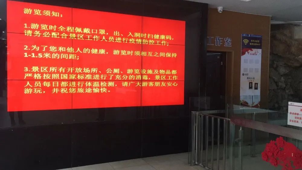 景区严格采取实名预约、分时段进入岩洞游览,严格按要求控制客流量。游客须在提前一天在网上进行预约入园时间。游览时,须全程佩戴口罩;出、入洞时扫健康码;游客之间保持1.5米以上的安全距离。