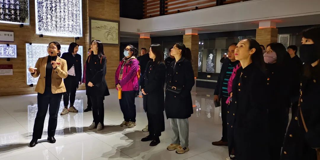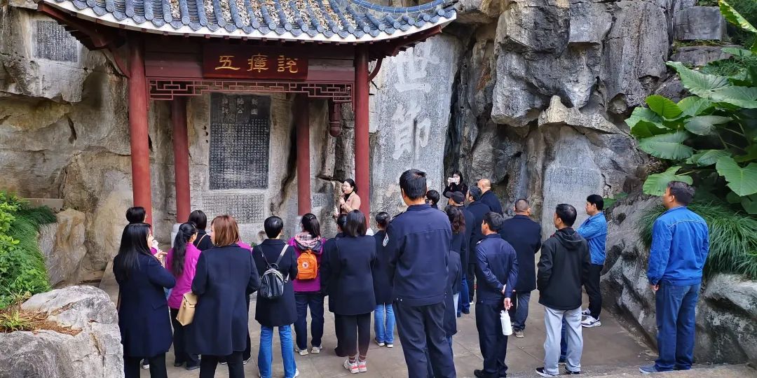 在讲解员的引导下,党员们实地参观了龙隐岩内的石刻和桂海碑林阁内的书法石刻作品。珍贵的摩崖石刻和石刻拓本,内容涉及政治、经济、军事、文化、民族关系等各个方面,书体楷、草、隶、篆俱全。