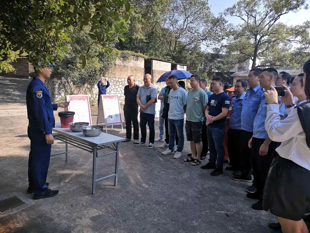 △消防员向大家展示试验内容在理论培训结束后,参加培训人员转移到景区篮球场。消防员向大家展示了烟头分别在垃圾桶、枯草堆、棉花三种环境中引起燃烧的实验。让大家知道消防安全防范就在身边的细微处,生活中一定要注意火灾防范,避免因小失大、一时的疏忽造成严重的后果。
