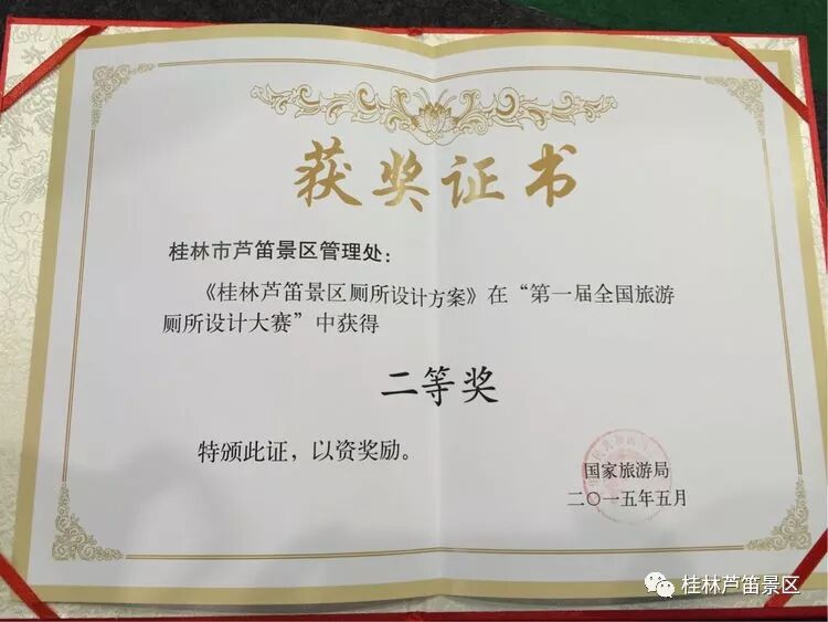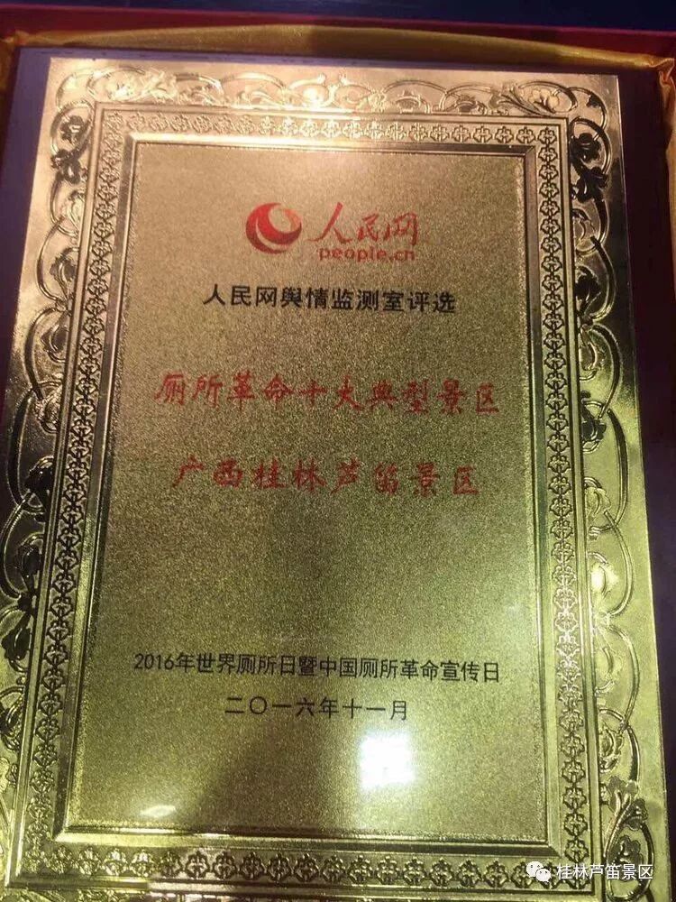 2016年,在11月19日国家旅游局和人民网共同举办的"世界厕所日暨中国厕所革命宣传日"活动中,芦笛景区荣获"厕所革命十大典型景区",国家旅游局局长李金早对景区工作予以充分肯定,并勉励景区在厕所革命及其各方面继续努力,更上一层楼。