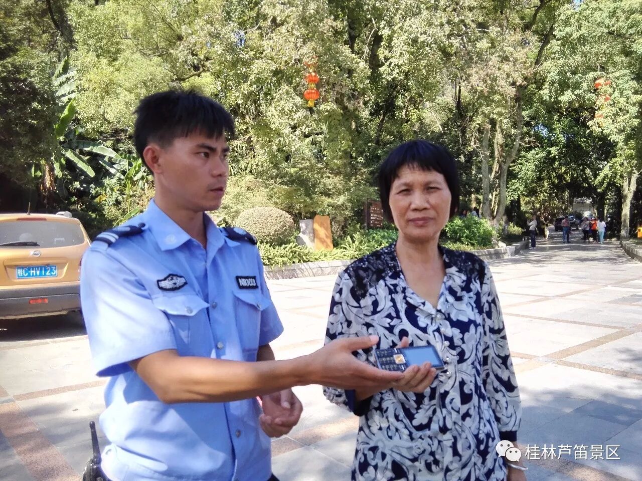 2017年6月16日,景区保卫部门接到一名上海游客报案:自己的双肩包遗失在景区岩洞内,包内有3000多元现金、巨额资金的银行卡及重要证件,通过调取监控发现该名游客的背包被一名中年女性拿走,景区立刻报警通过反复查阅景区各点布置的监控录像,确定相关嫌疑人的各项特征,并将这些关键信息提供给警方,最终在警方的协助下找到嫌疑人并将游客丢失的背包归还;2017年11月27日,园区内发现一名智残人员求助……