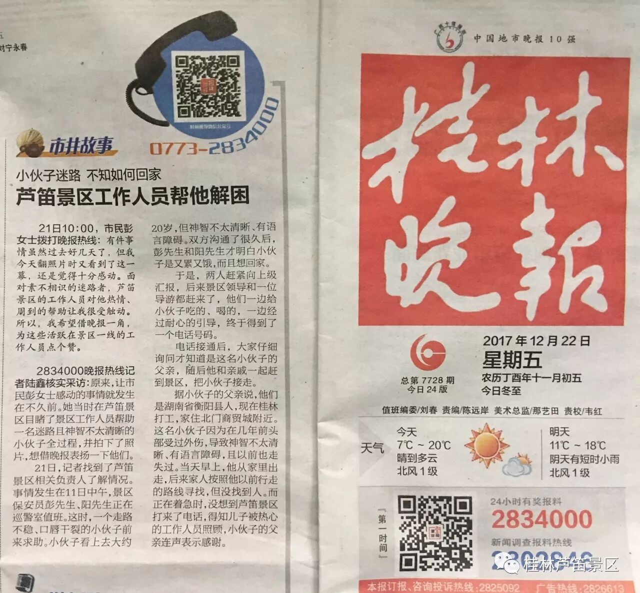 这是一篇篇记录着芦笛好人好事的《好人日记》,这些在做好事的人,他们都有个共同的名字:芦笛人!他们是一个个在认真践行优质服务理念的芦笛人的缩影。市内各大主流媒体及报纸报刊都对景区的好人好事进行了报道和宣传,传递社会正能量。为他人做好事、助人为乐、拾金不昧,或临危不惧、见义勇为,这些点滴的善举,温暖人心。在芦笛景区这些好人好事从未间断过,芦笛人就在您身边。景区的每一个工作人员,“急游客之所急,想游客之所想”,始终把游客的安全放在第一位,把游客至上的服务理念落实到每一个细节上,为游客的安全保驾护航!