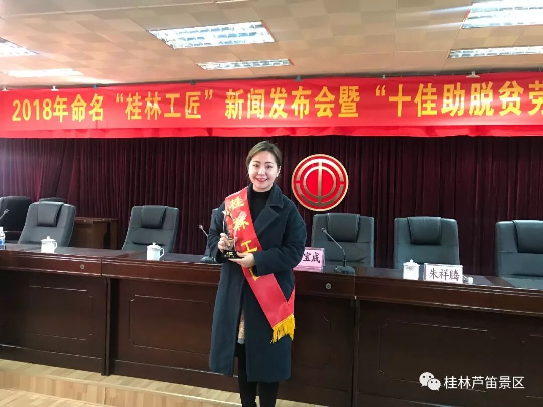 为加强新时期产业工人队伍建设,大力弘扬劳模精神、劳动精神,工匠精神,在全社会学习宣传“桂林工匠”匠心筑梦先进典型,桂林市总工会联合开展2018年发现命名“桂林工匠”活动,经基层推荐、网络宣传投票、有关部门审核、活动领导小组初评、社会公示、评委委员会审定、在近百名行业能手中评选出十名“桂林工匠”,芦笛景区女子导游班班长秦小珺荣幸当选,并且是唯一一名女工匠。